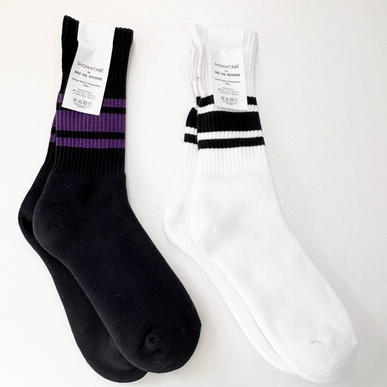 SHOWATABE by BRU NA BOINNE ショウワタベbyブルーナボイン 刺繍入り スケーターソックス -KAIJU-