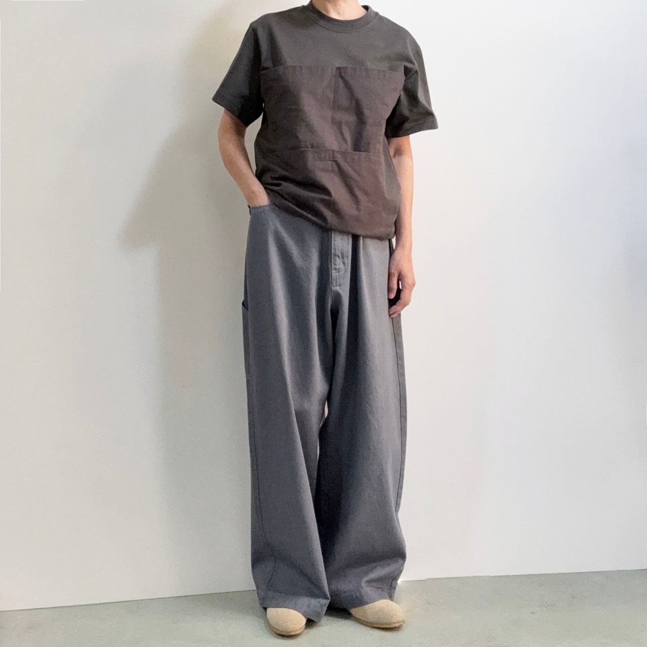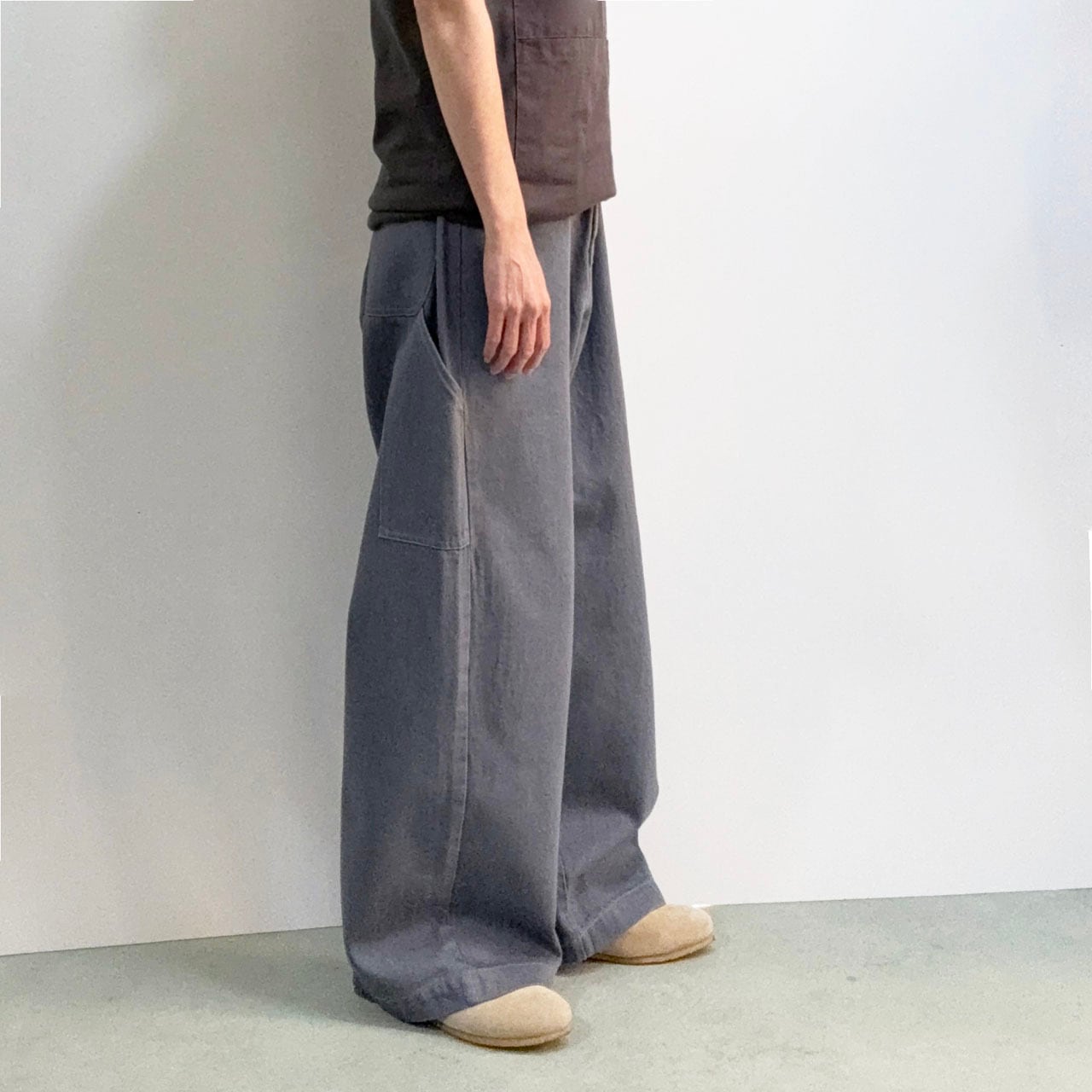 日本で古くから作業着として多くの人に着用され続けてきた「もんぺ」にペインターパンツの要素を加え、アップデートさせています