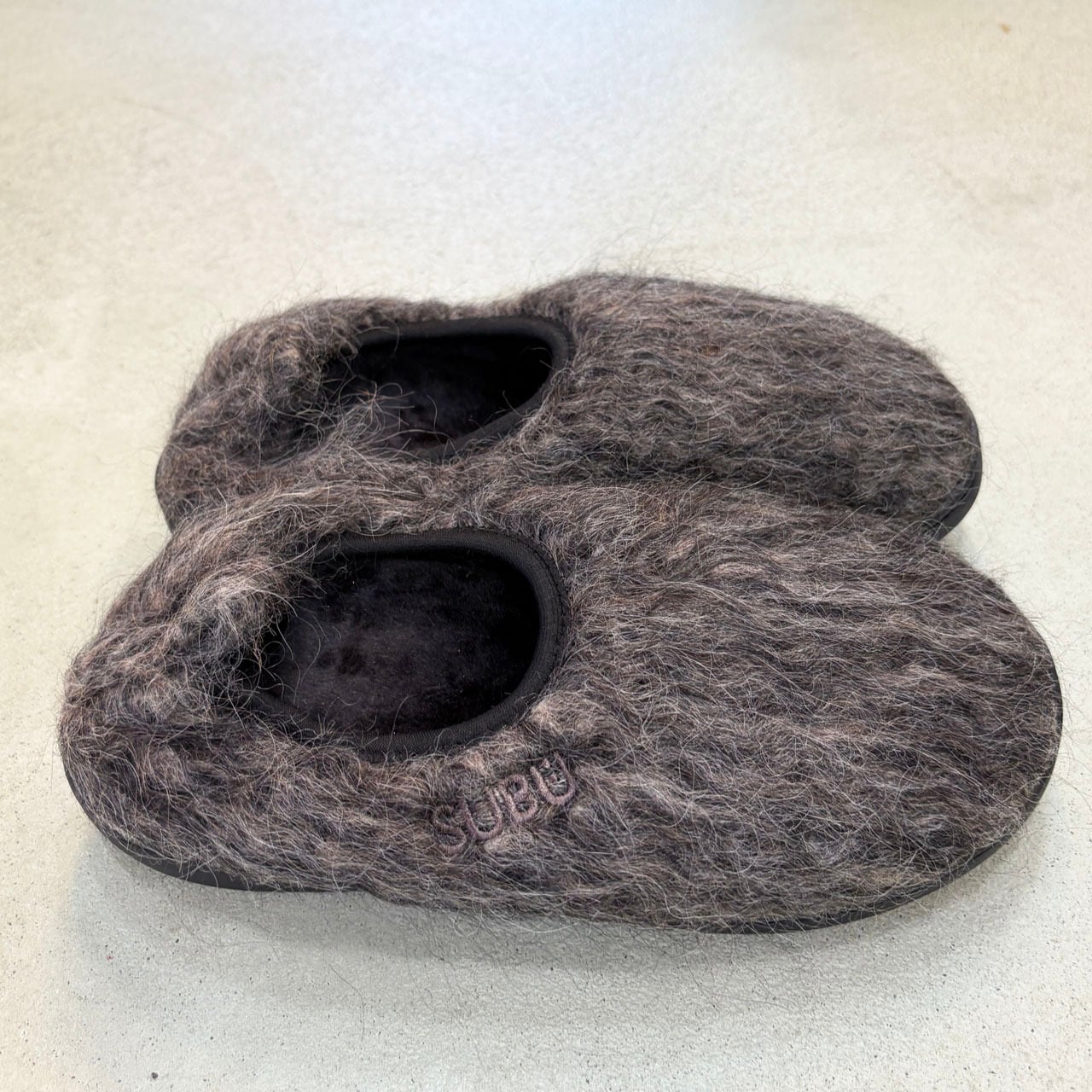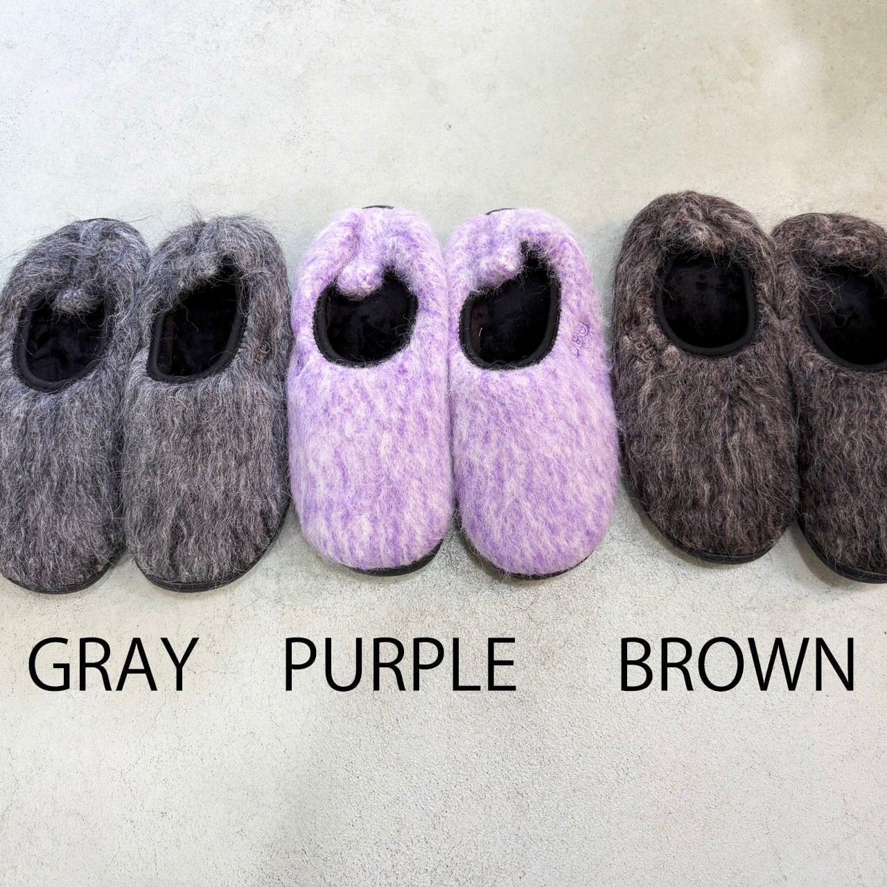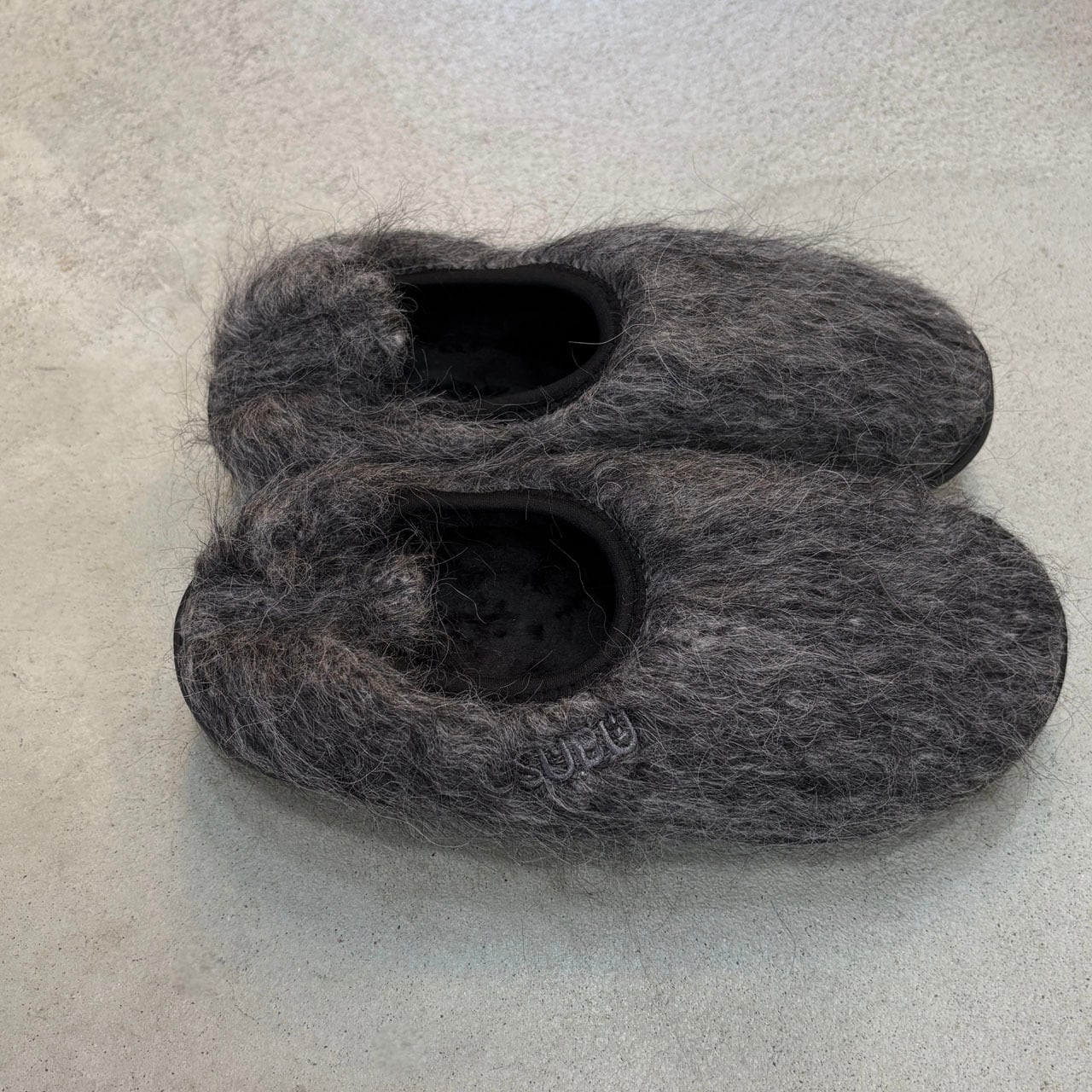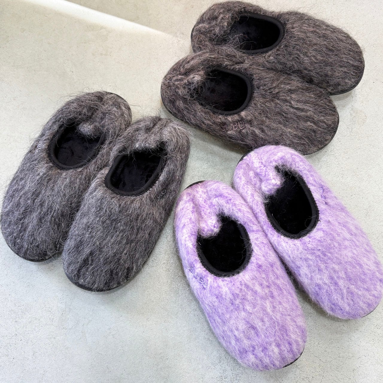 モヘアのような上品な質感のウール生地を使用した、柔らかい色合いが冬の足元に静かな存在感を漂わせます