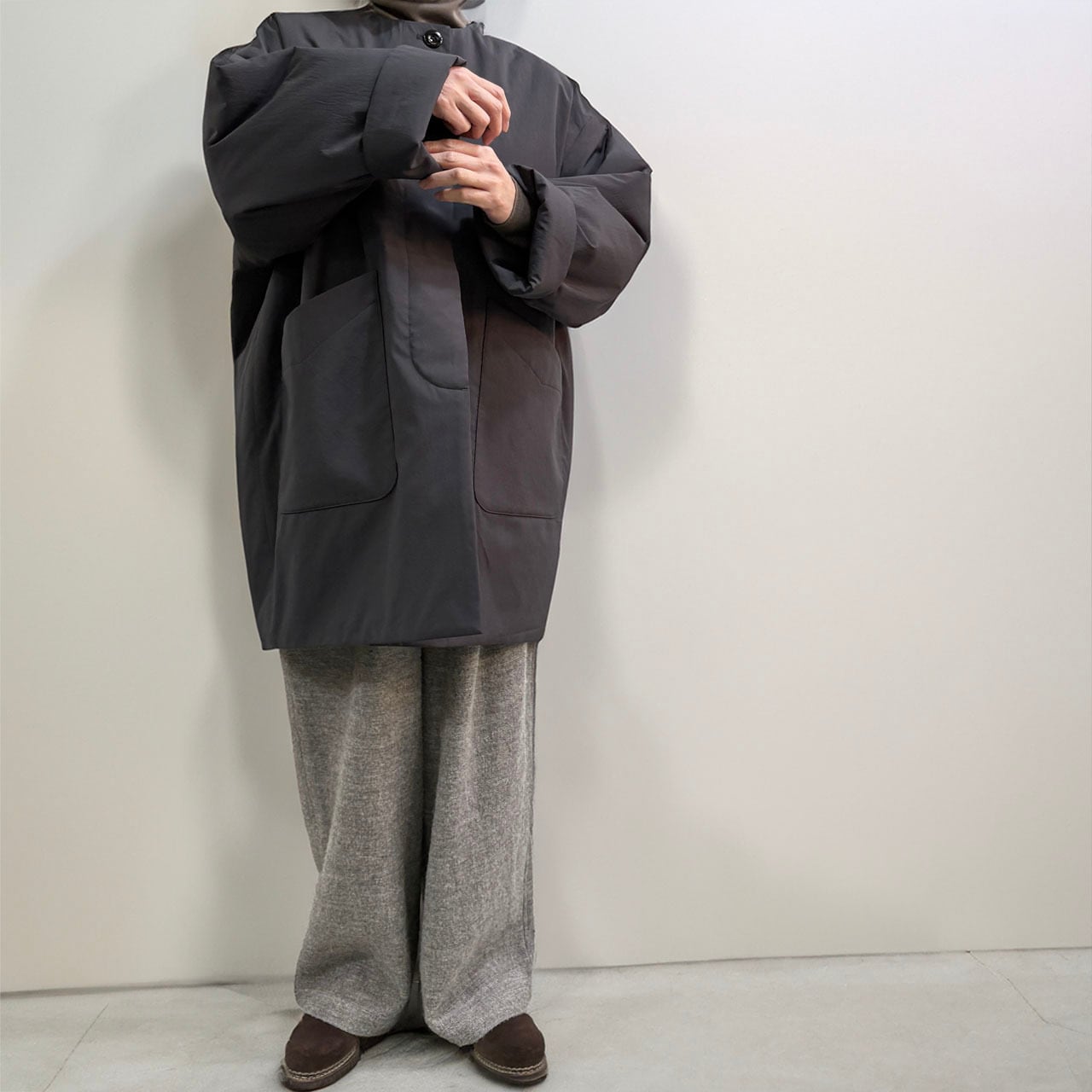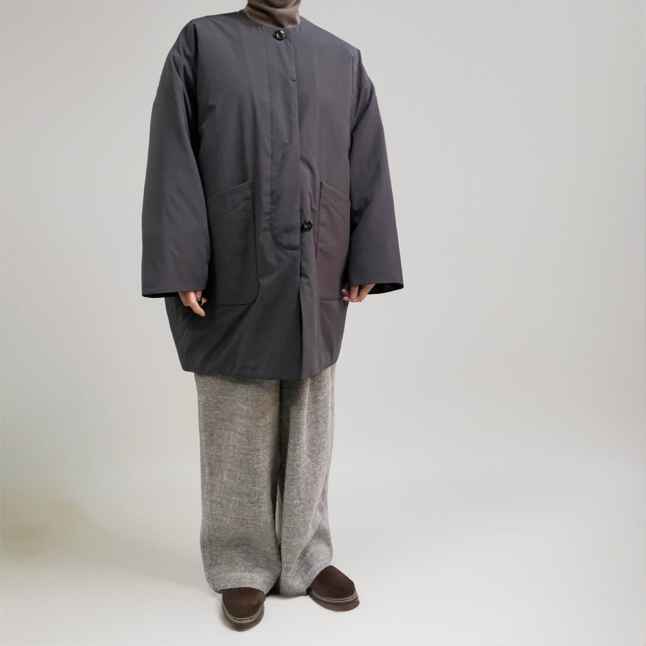 COMM.ARCH. コム・アーチ レディースコート NYLON FILLING NO COLLAR COAT -DULL GRAY-