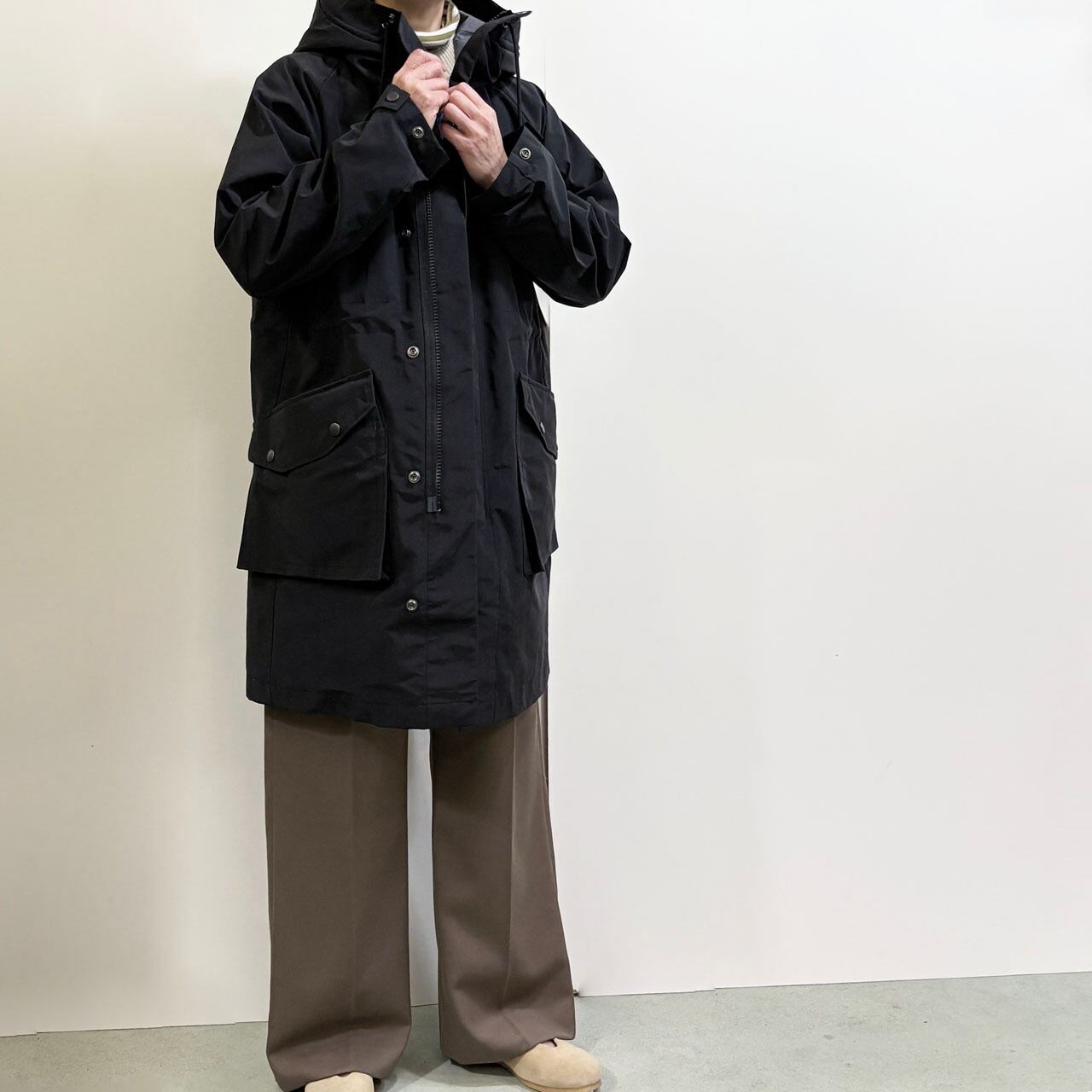 ウエストにはドローコードがありスタイルの変化も楽しめるなど細部にまでこだわった仕上がりとなっています