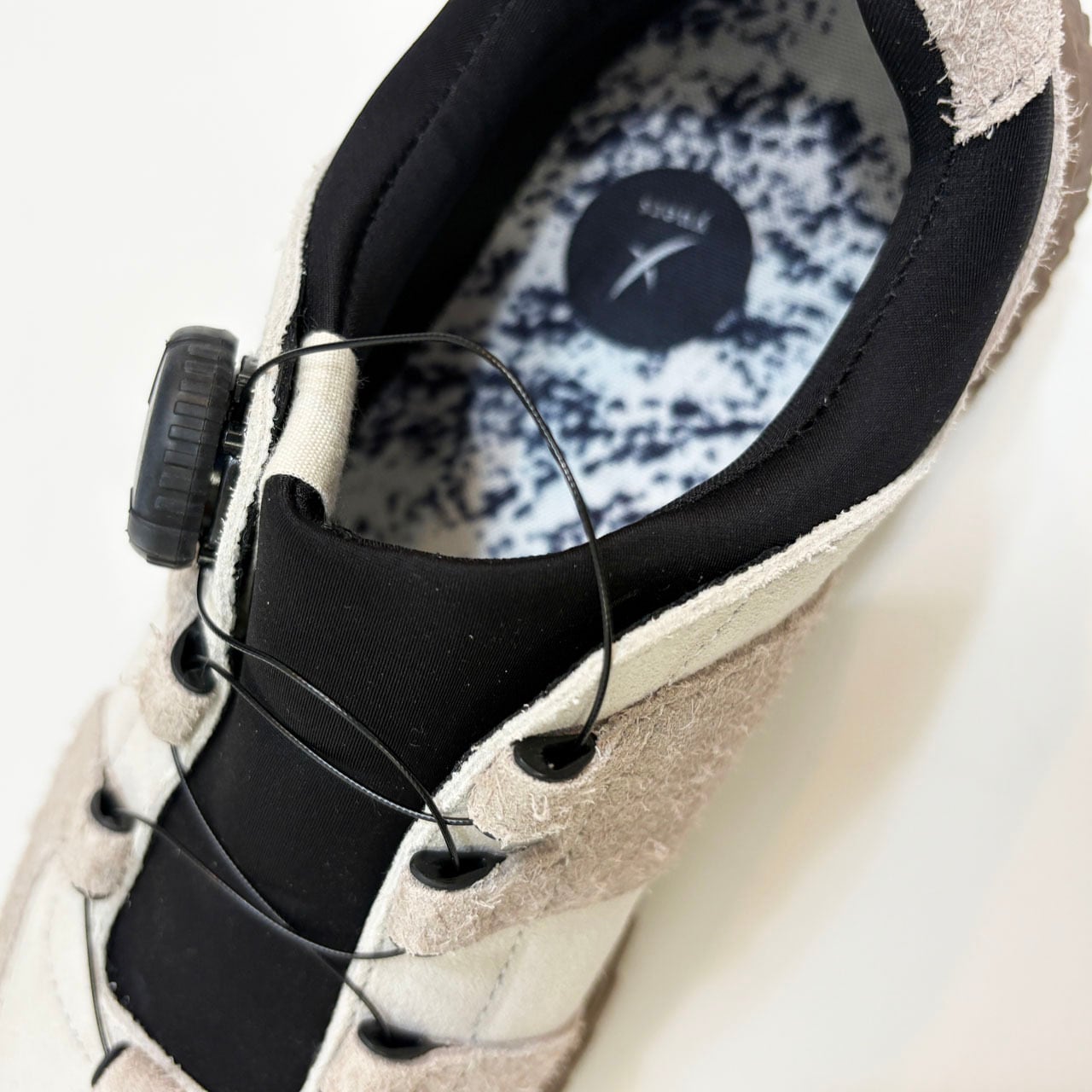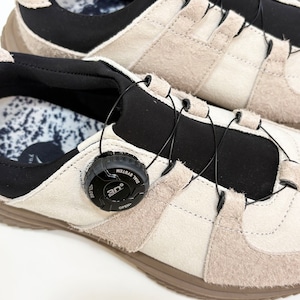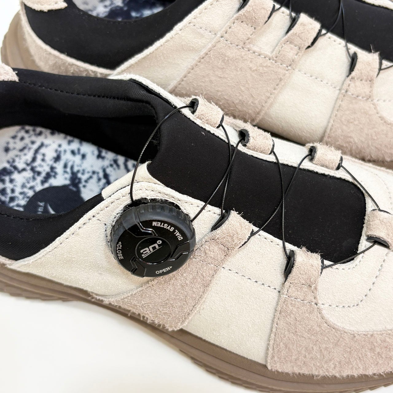 ・ダイヤル操作でフィット感を調整できるフリーロックを採用。足をしっかり包み込み、安定した歩行をサポート。