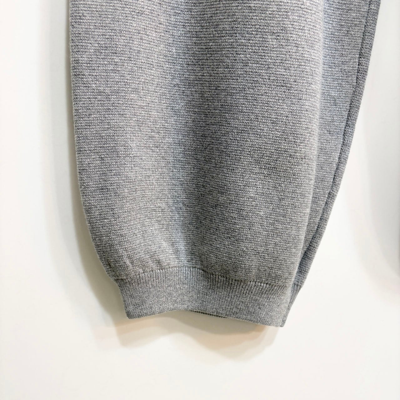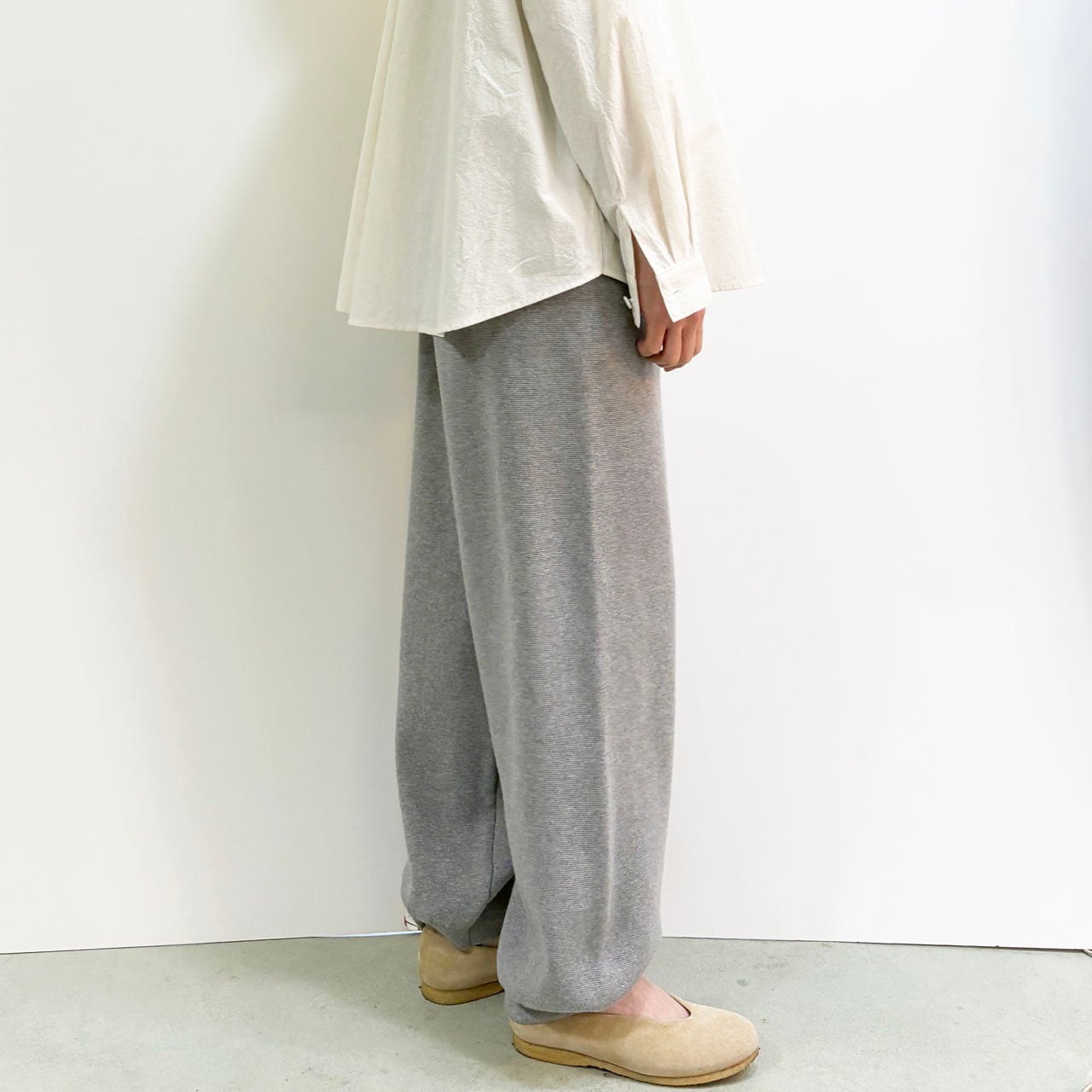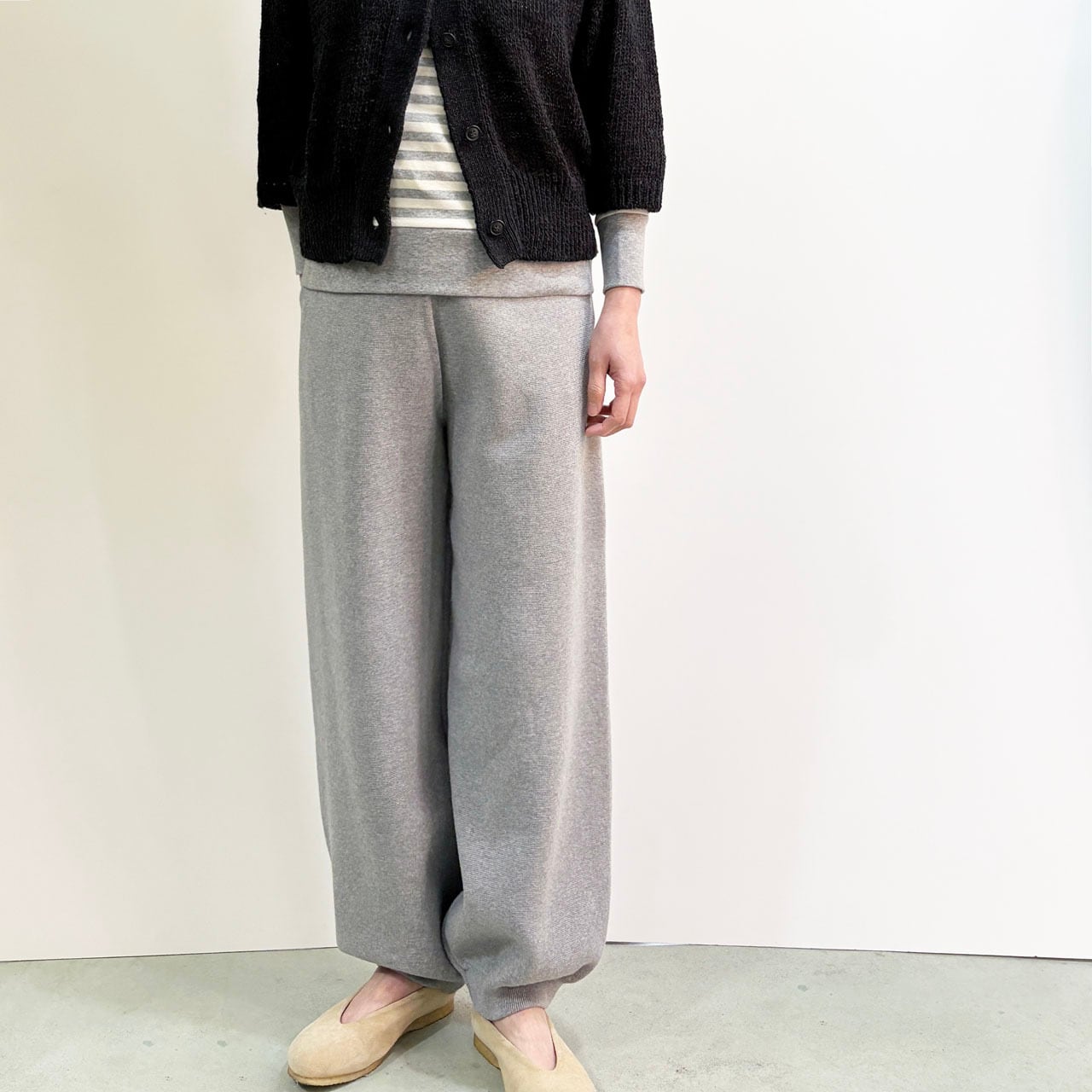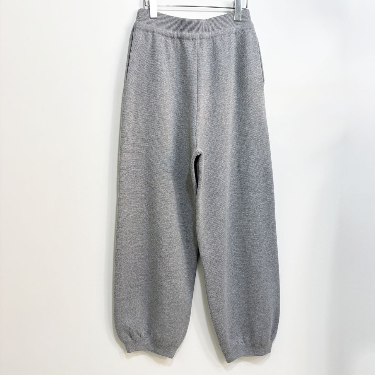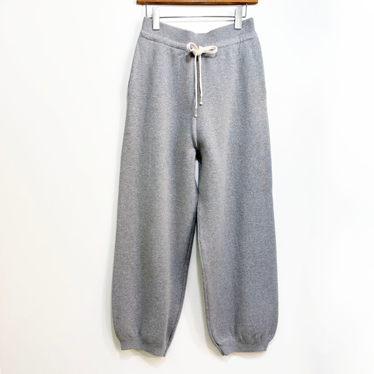 アスレチックウェアのスウェットパンツをイメージしつつ、ニット素材で上品に仕上げています