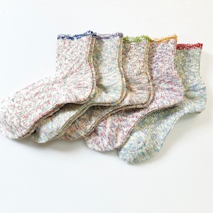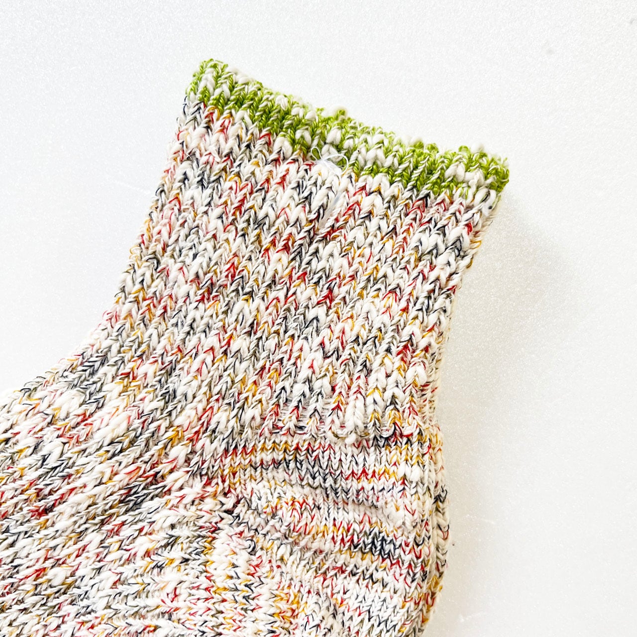 古い編機を使用してザックリと編み立てたコットンヘンプのソックスはいつでも快適かつ、丈夫で長く履いていただけます。